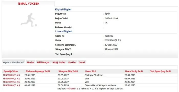 Fenerbahçe, TFF ye bildirdi: Sözleşmesi 1 yıl uzatıldı