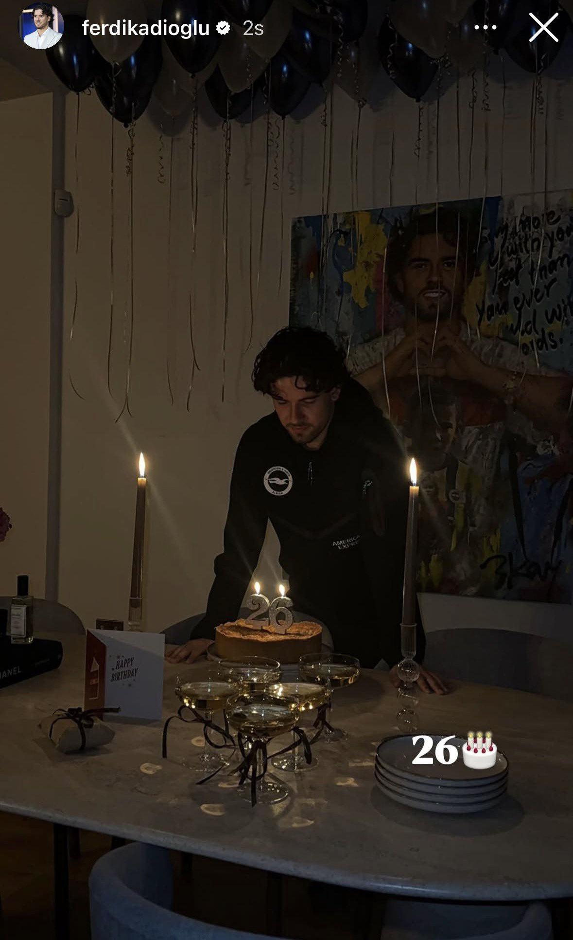 26 yaşına giren Ferdi Kadıoğlu'nun doğum günü için yaptığı paylaşımda bir tablo önünde mum üflediği görüldü.