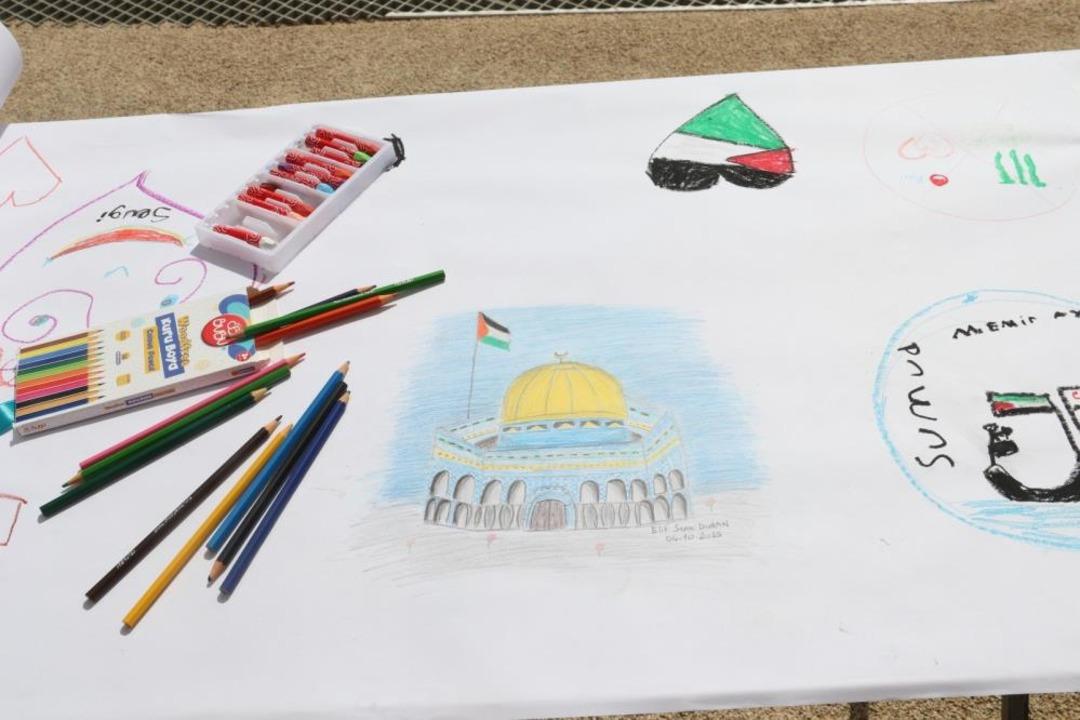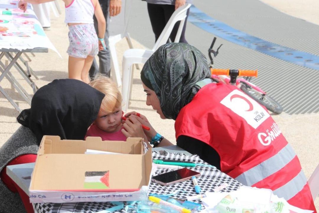 Yetim Vakfı Muğla Temsilciliği tarafından Şehit Fethi Bey Parkı’nda gerçekleştirilen programa çeşitli sivil toplum kuruluşu temsilcileri, öğrenciler ve aileler katıldı. Etkinlikte çocuklar yerlere konulan tuvallere resimler yaparak Gazze’ye destek mesajlarını yansıttı. Çizimlerde Mescid-i Aksa, Türk ve Filistin bayrakları ile boykot çağrısı yapılan ürünler ön plana çıktı. Çocukların yüzlerine Türk ve Filistin bayrakları çizildi, ayrıca pamuk şeker ikram edildi.
