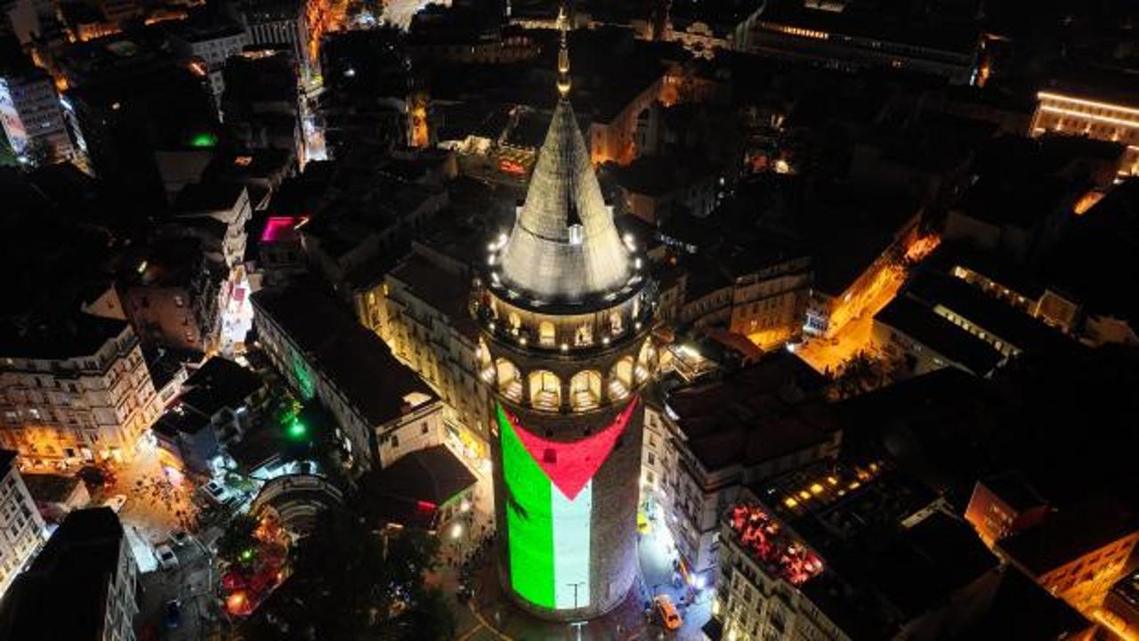 Filistin Bayrağı Galata Kulesi ne yansıtıldı