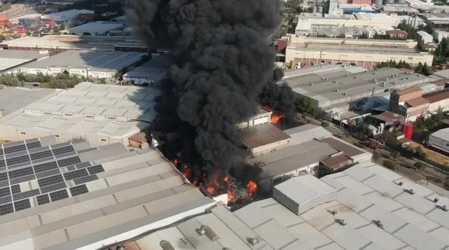 Öte yandan, yükselen alevler ve siyah dumanlar dron ile havadan da görüntülendi. Görüntülerde fabrikanın alevler içinde kaldığı, yoğun dumanın gökyüzünü kapladığı görüldü. Yangının çıkış sebebinin belirlenmesi için inceleme başlatıldı.