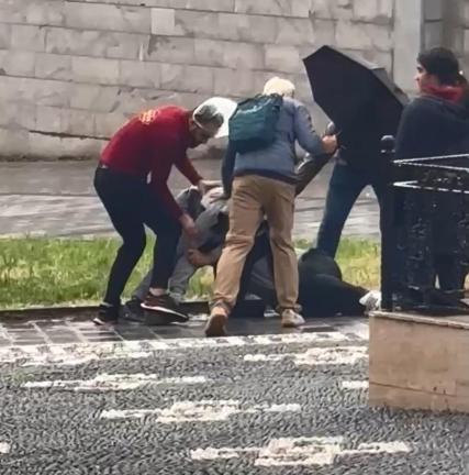 Gaziosmanpaşa da tartıştığı kişiyi önce yerde sürükledi; sonra kaldırım taşıyla darbetti