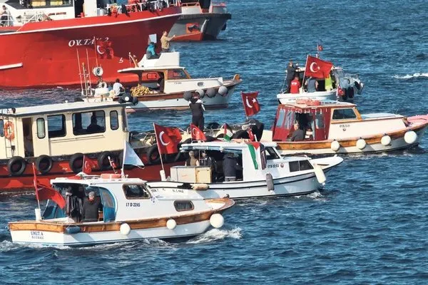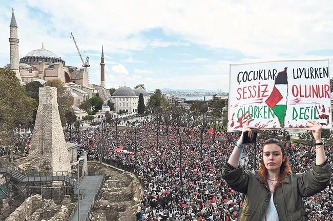 ❱ İSTANBUL: Filistin'e Destek Platformu ve İHH öncülüğünde bir araya gelen on binlerce kişi, Gazze ablukasına tepki göstermek ve Gazze için yola çıkan Küresel Sumud ve Özgürlük filolarına destek vermek amacıyla Ayasofya Cami önünden Eminönü Meydanına yürüdü. Ellerinde Türk ve Filistin bayraklarıyla yürüyen vatandaşlar, "Siyonist katiller hesap verecek, "Müslüman uyuma kardeşine sahip çık", "Nehirden denize Özgür Filistin" sloganları attı. Yürüyüşe binlerce vatandaş katıldı. Etkinlikte konuşan HAKİş Genel Başkanı Mahmut Arslan, "Gazze halkı yalnız değildir. Filistin davası artık Filistinlilerin davası olmaktan çıkmıştır. Artık Müslüman ülkelerin davası olmaktan da çıkmıştır. Filistin davası artık bir insanlık davasıdır" dedi.