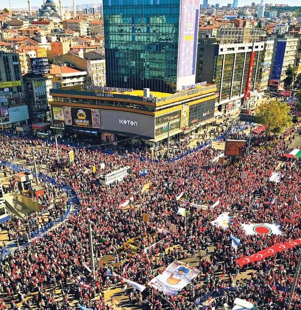 ❱ ANKARA: İsrail'in 7 Ekim 2023'ten bu yana Gazze'de gerçekleştirdiği soykırımı ve bölgede yaşanan insanlık dramını protesto etmek için Ankara Filistin Dayanışma Platformuna (ANFİDAP) mensup sivil toplum kuruluşlarınca "Gazze Kararlılık Yürüyüşü" düzenlendi. Melike Hatun Camisi'nden başlayan yürüyüşte yaklaşık 300 bin kişi katıldı. 15 Temmuz Milli İrade Meydanı'nda son bulan yürüyüşün ardından bir miting düzenlendi. Yürüyüşe katılan Ulaştırma ve Altyapı Bakanı Abdulkadir Uraloğlu, kadınlar, çocuklar ve masum insanlar katledilirken asla sessiz durmadıklarını ve durmayacaklarını belirterek, "İnşallah kısa zamanda öncelikle ateşkes, sonra da orada barış sağlanır. Mutlaka başkenti Doğu Kudüs olan bir Filistin devleti kurulana kadar Türkiye olarak mücadele etmeye devam edeceğiz" dedi. İçişleri Bakanı Ali Yerlikaya yaptığı paylaşımda, Ankara'daki "Gazze Kararlılık Yürüyüşü"nde 300 bin vicdanın yerinden doğrulup ayağa kalktığını belirterek, "Siyonistlerin masum çocuklara, hastanelere, kadınlara yağdırdığı bombalara karşı Ankara'da yeri titreten bu yürüyüş, sadece bir tepki değil, bir medeniyet hafızasının ayağa kalkışıdır" ifadesini kullandı.