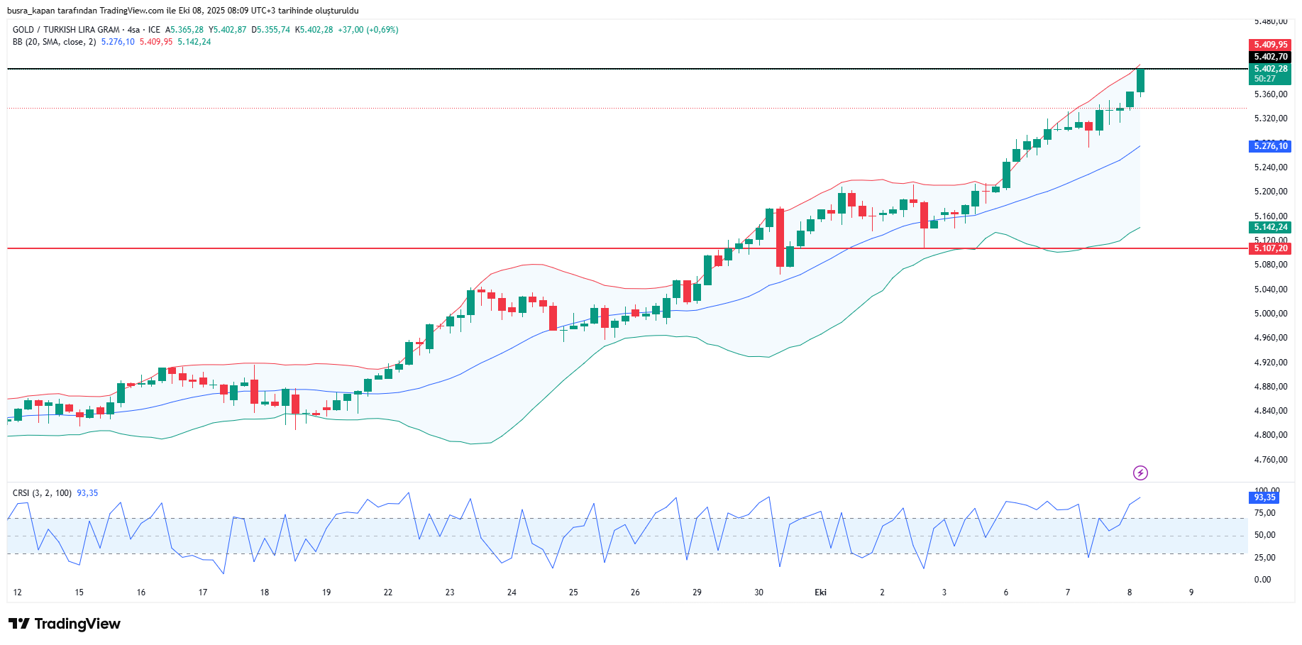 Dolar/TL kurundaki rekorlar ve ons altıdaki yükselişlerin etkisiyle, gram altın rekor üstüne rekor kırıyor. Gram altın resmi rakamlarda bugün 5 bin 409 liraya kadar yükselerek rekor kırdı.