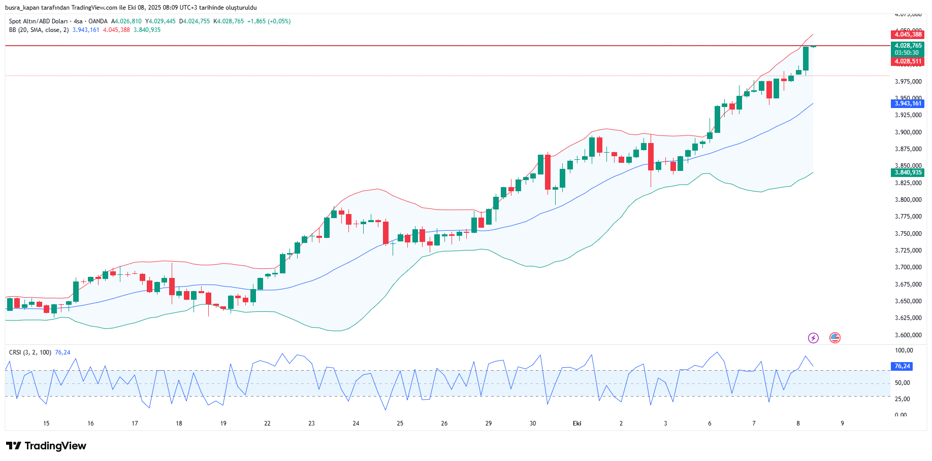 Dur durak bilmeden yükselen altın fiyatları sonrası, bankacılık devleri uyarılarda bulunarak birbirinden ayrıştı. Bank Of America BofA, altının 200 haftalık ortalamasının yüzde 70 üzerinde olduğuna ve bu durumun sadece üç defa yaşandığına dikkat çekerek “düzeltme” uyarısında bulundu. Trive Yatırım da onsta 4.025 doların kritik direnç olduğunu bildirdi.