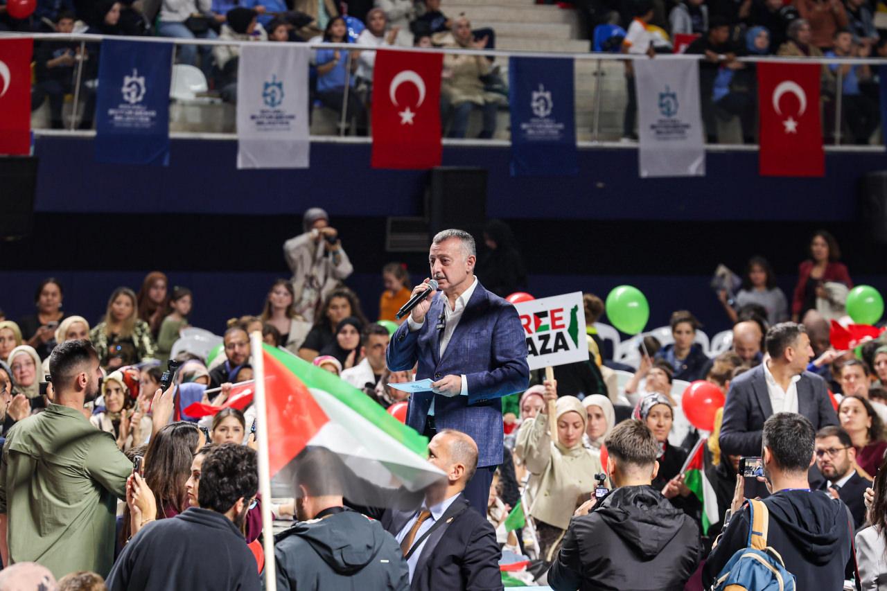 Resmi rakamlara göre Filistin’de 65 bin masum çocuk ve kadının katledildiğini söyleyen Başkan Büyükakın, daha adil bir dünyanın mümkün olduğunu haykırmaya devam edeceğini vurgulayarak, “Sizleri yürekten tebrik ediyorum. Sizler gibi insanların yaşadığı bir şehrin belediye başkanı olduğum için Allah’a hamd ediyorum. Filistinli çocuklar zulümden kurtulana kadar, oradaki zulüm durana kadar mevzuyu anlatmaya devam edeceğiz” dedi ve gençlerden mücadele için söz alarak “Ne diyoruz nehirden denize Özgür Filistin!” sözleri ile konuşmasını tamamladı.