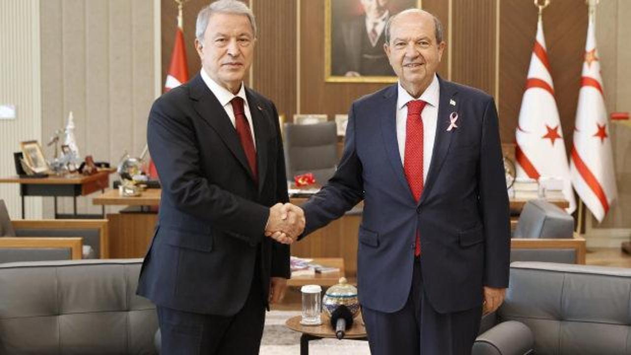Eski Milli Savunma Bakanı Hulusi Akar, KKTC Cumhurbaşkanı Ersin Tatar'ı ziyaret etti.