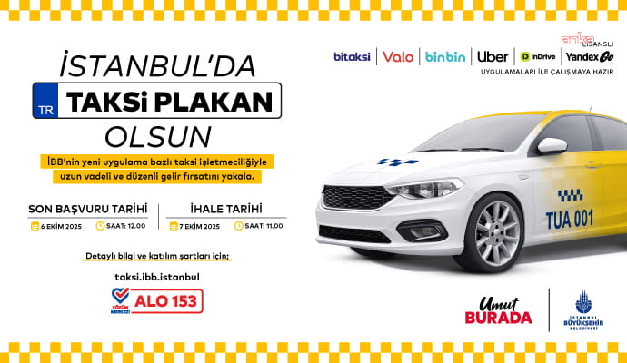 250 YENİ TAKSİ PLAKASI SİSTEME GİRİYORYenikapı’daki Dr. Mimar Kadir Topbaş Gösteri ve Sanat Merkezi Etkinlik Alanı’nda yapılacak ihaleyle birlikte sisteme 250 yeni taksi plakası dahil edilecek. İBB, bu model ile taksicilik sektöründe sıkça gündeme gelen yolcu seçme, kısa mesafe almama ve fazla ücret tartışmalarını ortadan kaldırmayı hedefliyor.