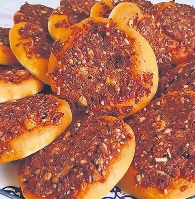 YAPILIŞI: Bir kabın içine mayayı, sütü, suyu, şekeri, zeytinyağını ve tuzu ekleyip homojen bir karışım elde ediyoruz. Ardından ele yapışmayacak kıvamda olana kadar un ekliyoruz. Hamuru yoğurduktan sonra üzerine nemli bez koyarak bir saat dinlendiriyoruz. İç malzemenin hazırlanması ise şöyle: Soğanı ince ince kıyıp bir kabın içerisine alıyoruz. Daha sonra salçayı, zeytinyağını, susamı, cevizi, zahteri, pul biberi, karabiberi ve kimyonu ekleyip karıştırıyoruz. Hamurumuzu yağlanmış tepsimize yayıyoruz. Üzerine biberli harcı koyuyoruz. 200 derecede 30 dakika pişiriyoruz.