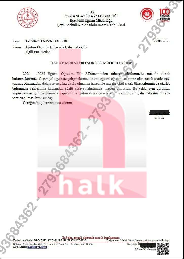 İddiaya göre okul müdürü, aynı binayı geçici olarak kullanan Hanife Murat Ortaokulu Müdürlüğü’ne resmi yazı göndererek erkek öğrencilerin hafta içi okul binasına girmemesi ve egzersiz çalışması yapmamasını istedi. Resmî yazıyla bildirilen bu talep, kamuoyunda “haremlik-selamlık okul” tartışmasını yeniden alevlendirdi.