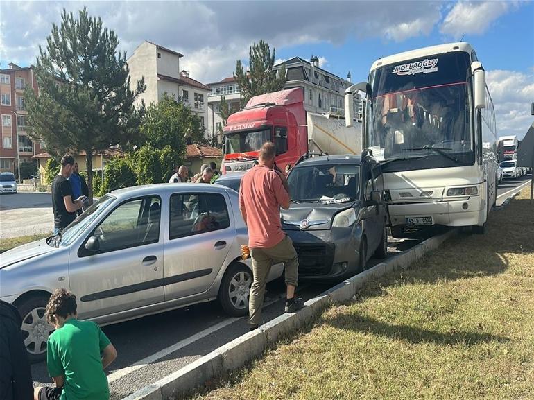 İşçi servisi otobüsü, kırmızı ışıkta bekleyen 7 araca çarptı: 3 yaralı