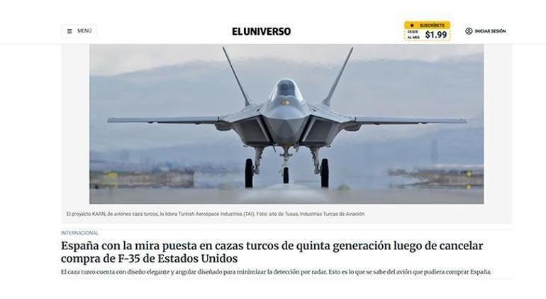 El Universo, İspanya Hava ve Uzay Kuvvetleri'nin 2030'dan itibaren envantere girmesi planlanan KAAN'ı satın almayı tartıştığını yazarken, Türkiye'nin KAAN projesiyle “F-16'ların yerini alacak, hava üstünlüğü sağlayan bir savaş uçağı” üretmeyi hedeflediğini aktarıyor.