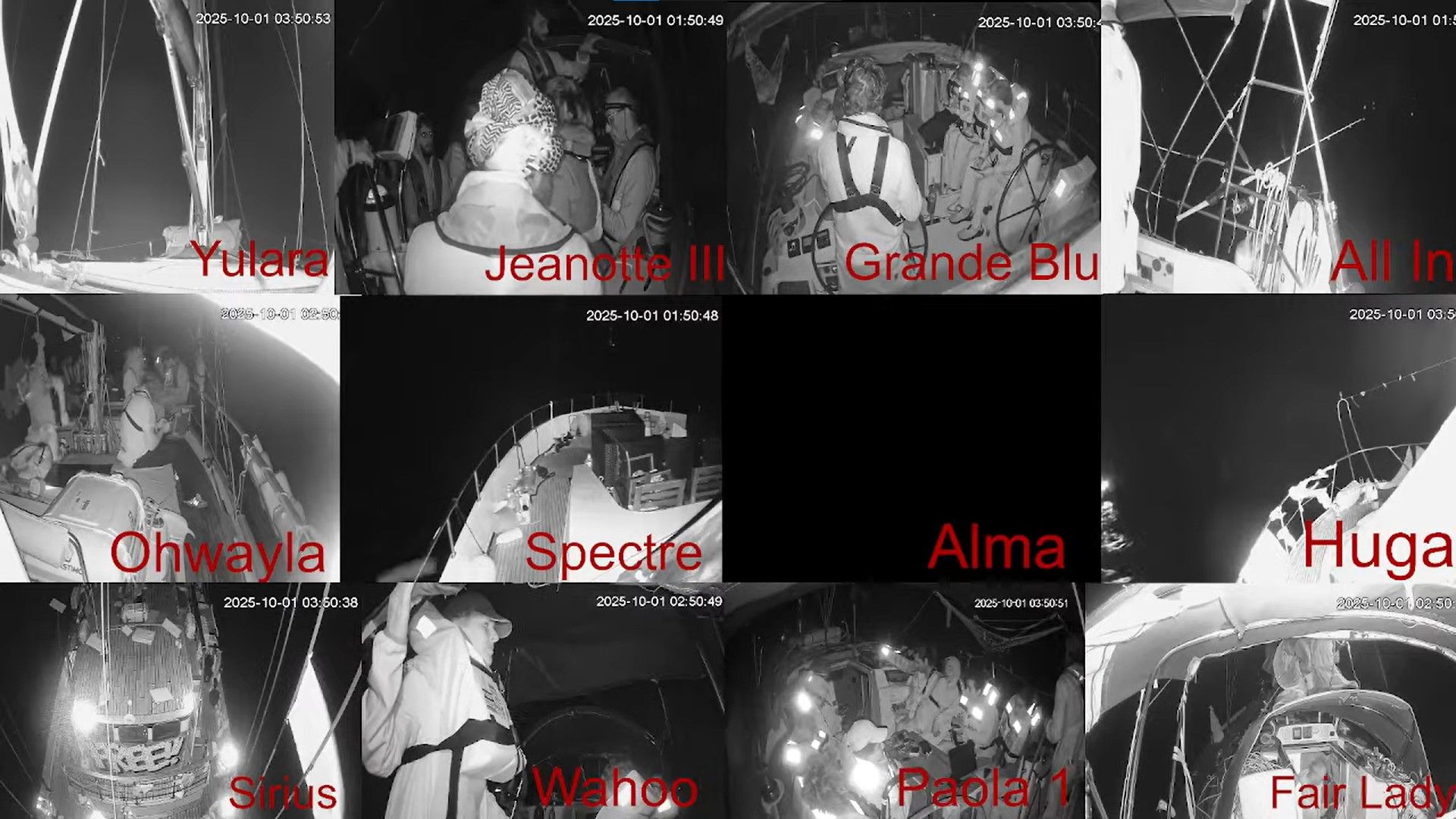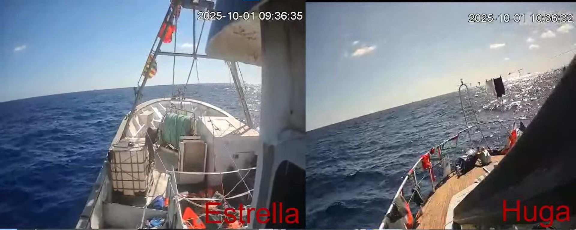 Küresel Sumud Filosu'nda bulunan ve ismi paylaşılmayan Al Jazeera muhabirinin açıklamasına göre, İsrail'e ait bir gemi, filoya liderlik eden Alma gemisinin çok yakınına kadar yanaştı.