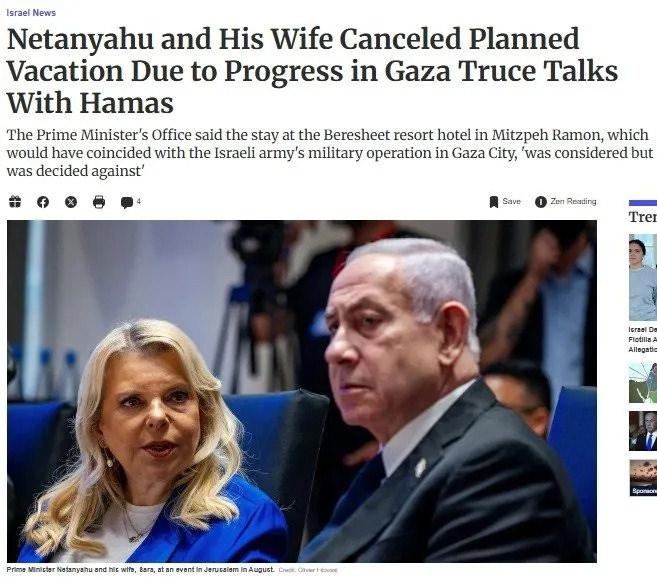 HAARETZ: NETANYAHU'LAR TATİL PEŞİNDEHaaretz, Başbakan Binyamin Netanyahu ve eşi Sara'nın, Gazze rehine müzakereleri sürerken planladıkları tatili iptal etmek zorunda kaldığını aktardı.