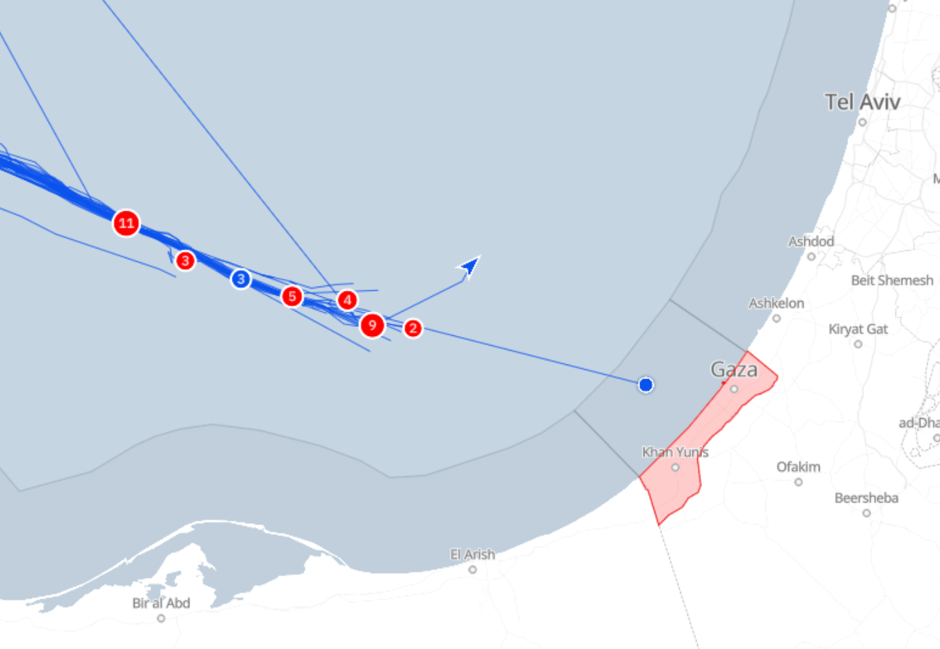 Filoya yapılan müdahaleler sürüyor. Sumud Filosu takip sistemine göre 5 gemi hala yolculuğuna devam ediyor, ancak İsrail ordusu bu gemileri de hedef alıyor. Bazı gemiler ise filodan ayrılarak yön değiştirdi.