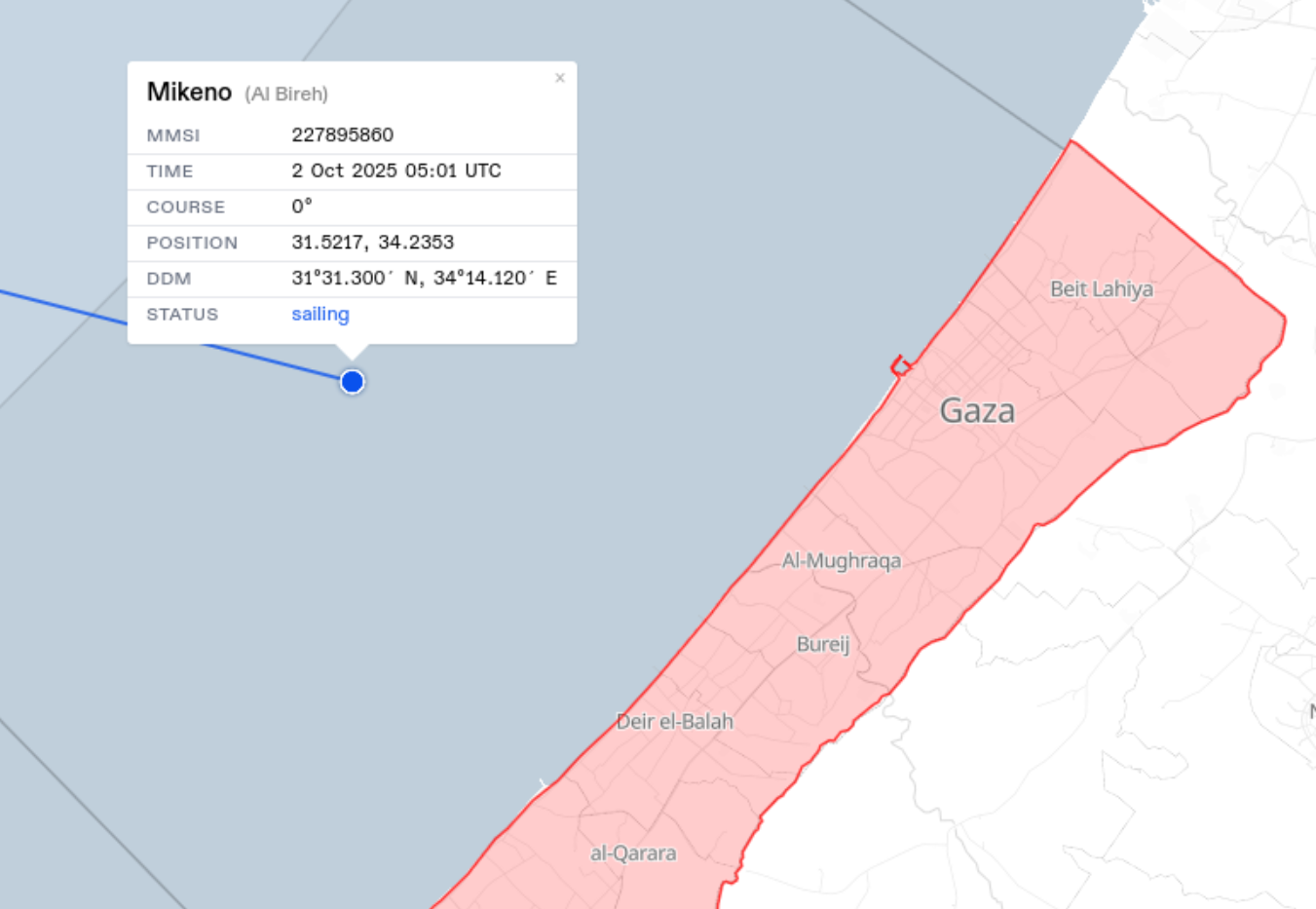 Mikeno'nun varması durumunda Gazze'nin Remal ilçesindeki limana yanaşması bekleniyor. Geminin yayını ise şu an için kesilmiş durumda, sdaece haritadan görünüyor.