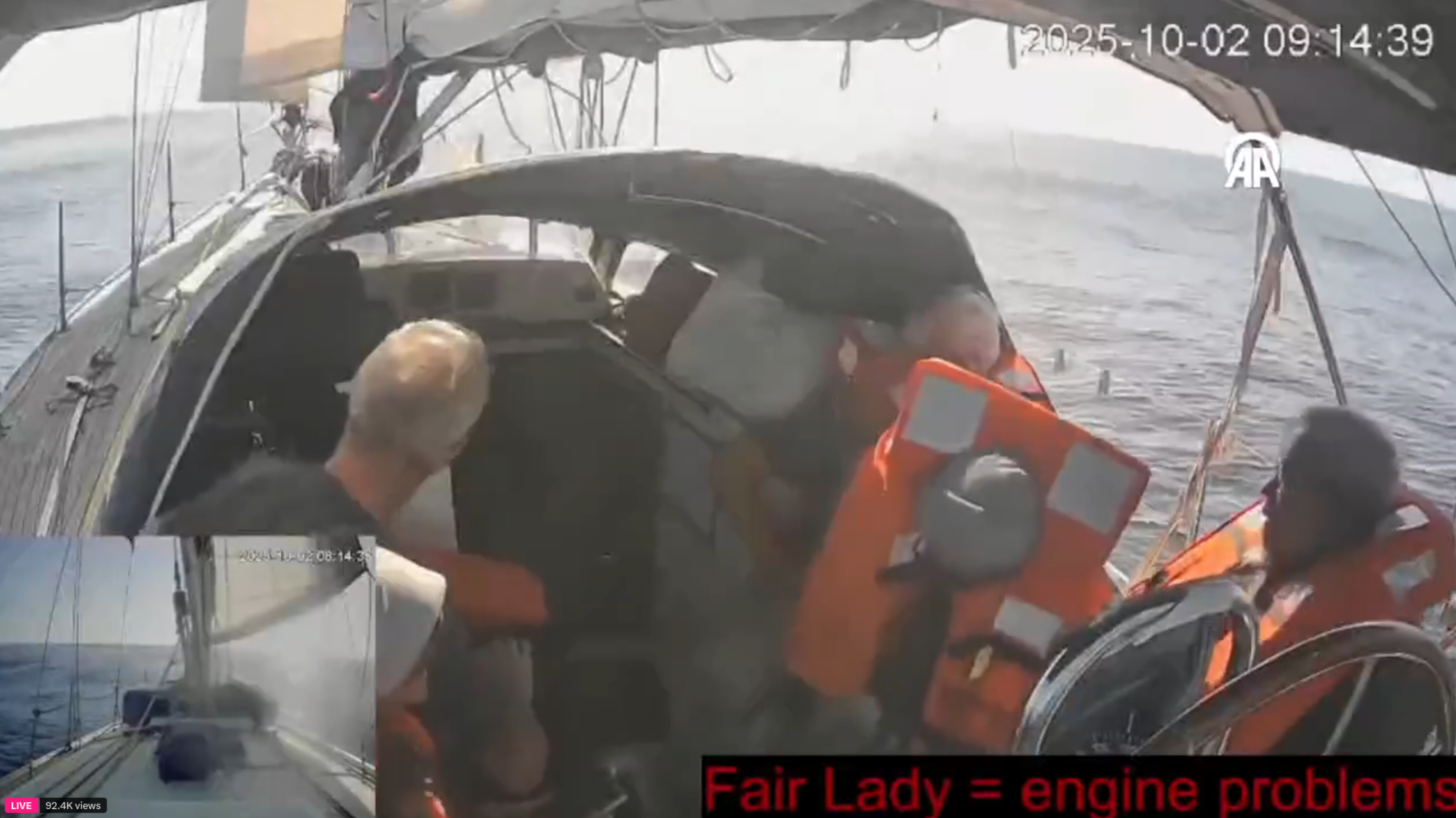 Fair Lady'deki aktivistler hızla can yeleklerini kuşandı. Geminin motorunda da arıza olduğu belirtildi. Kısa süre sonra da geminin canlı yayını kesildi.