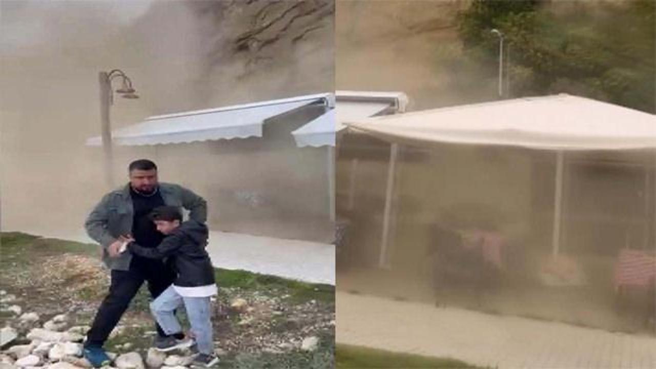 İstanbul da feci olay! Çay bahçesine kaya parçaları düştü