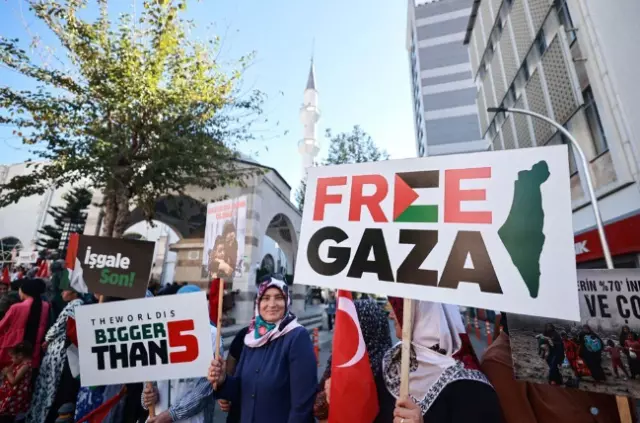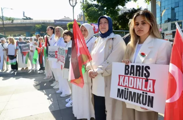 Yozgat'ta otogar yakınlarında toplanan kadınlar, ellerinde Türk ve Filistin bayraklarıyla zincir oluşturdu. Kadınlar daha sonra Cumhuriyet Meydanı'na doğru yürüyüşe geçti.