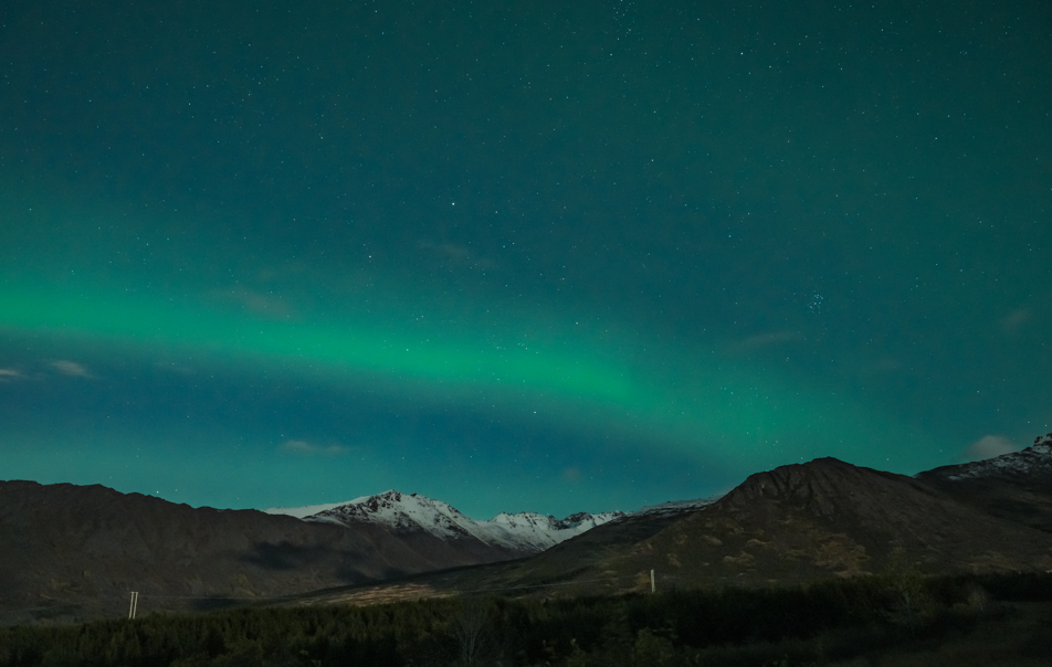 KARTPOSTALLIK MANZARA OLUŞTURDUDoğanın en büyüleyici olaylarından biri olan kuzey ışıkları, bu kez karla kaplı dağın silüetini yeşil ve turkuaz tonlarıyla aydınlatarak kartpostallık bir manzara oluşturdu. Bölgeye gelen doğa tutkunları ve fotoğrafçılar, bu nadir anı ölümsüzleştirmek için objektiflerini gökyüzüne çevirdi.