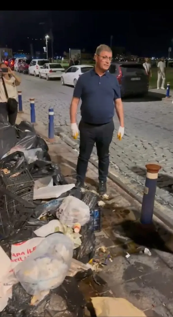 İzmir'de grev şova dönüştü. İzmir Büyükşehir Belediye Başkanı Cemil Tugay'ın ilçe belediye başkanları, meclis üyeleri ve bürokratlarla birlikte 1. Kordon'da biriken çöpleri toplamasının ardından bu sefer de CHP İzmir İl Başkanı Şenol Aslanoğlu sahaya indi. Yanına CHP İl Gençlik kolları üyesi gençleri de alan Aslanoğlu, Konak Meydanı'nda eline eldiven takıp çöp topladı.