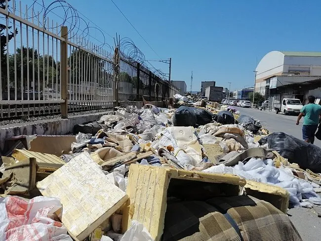 İzmir'in Buca ilçesine bağlı Seyhan Mahallesinde bulunan Aydın Hat Boyu Caddesi, çöp yığınları nedeniyle adeta çöplüğe döndü. Yol boyunca biriken sünger, kumaş ve evsel atıklar, hem çevre hem de halk sağlığı açısından ciddi risk oluşturuyor.