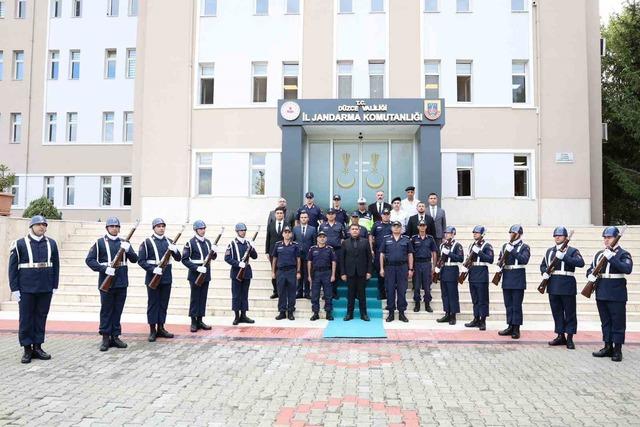 Vali Selçuk Aslan, İl Jandarma Komutanlığı’na giderek İl Jandarma Komutanı Jandarma Kıdemli Albay Mustafa Tetik’ten il genelindeki güvenlik çalışmaları hakkında kapsamlı bilgi aldı. Program kapsamında Şeref Defteri’ni imzalayan Vali Aslan, daha sonra yerleşke içinde yer alan Şehitler Çeşmesi ile Mescidi inceledi. 15 Ağustos 1984’te terörle mücadelede şehit düşen ilk kahramanlarımızdan Jandarma Komando Er Süleyman Aydın ve Jandarma Astsubay Çavuş Memiş Arıbaş’ın duvara işlenen figürlerinin önünde saygıyla durdu, dualar etti.