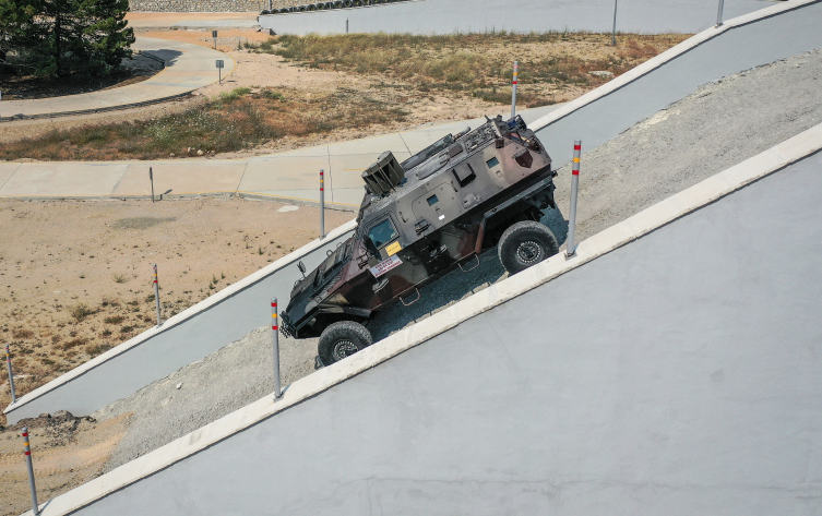 Islak ve çamurlu parkurlarda araçların manevra kabiliyetini öğrenen adaylar, dik rampaları aşarak su dolu havuzundan geçiyor. Yüzde 60'a varan eğimlerde yol alan sürücü adayları, atış poligonlarında farklı mesafelerden araç üzerindeki silah sistemleriyle hedeflere hareket halinde atışlar yapıyor.