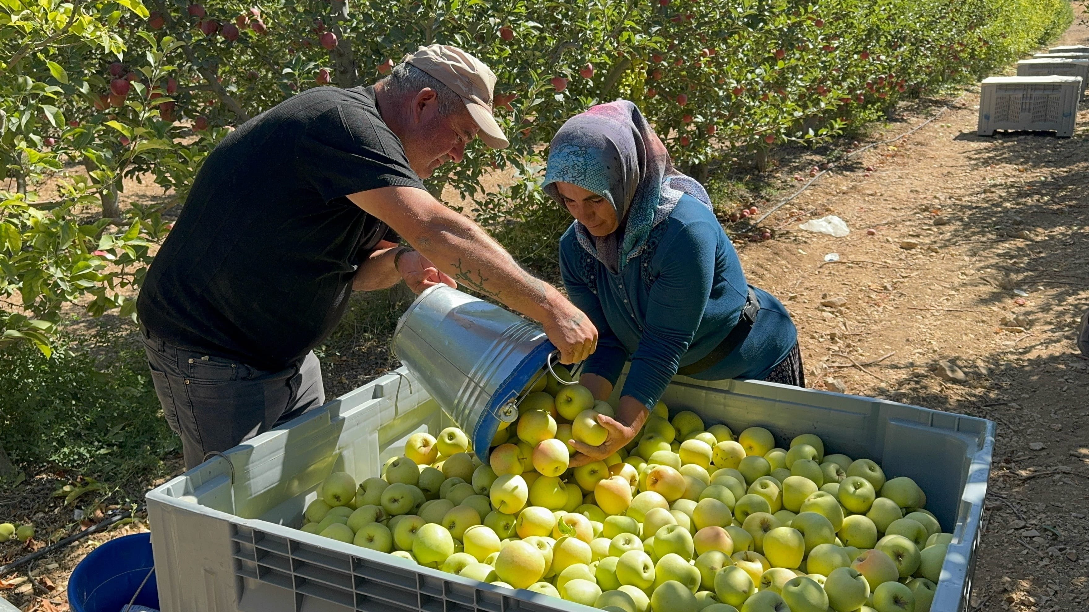 Elma üreticilerinin bir kısmı, tüccarla anlaşarak elmaları dalında satıyor, bir kısmı da topladıktan sonra pazara sunuyor.
