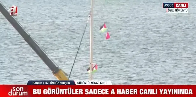 Bölgedeki A Haber muhabiri Ata Gündüz Kurşun, İsrail ordusunun saldırı düzenlediği Küresel Sumud Filosu'ndaki gemilerin Aşdod Limanı'na ulaşmaya başladığını bildirdi.