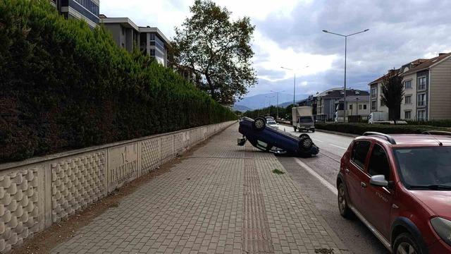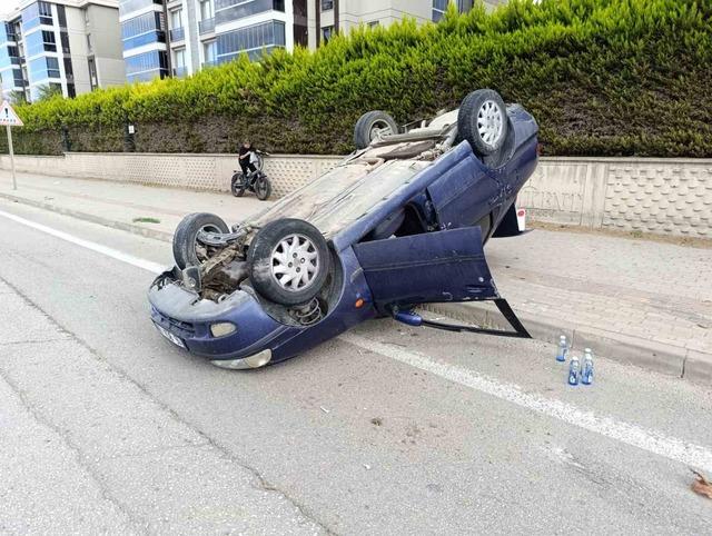 Kaza yapan otomobil takla atarak ters durdu: 1 yaralı