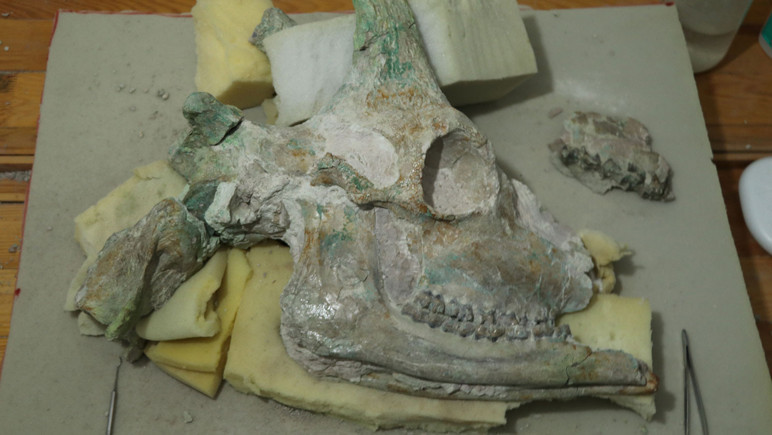 Bu sezon yürütülen çalışmalar kapsamında 9 milyon yıllık olduğu değerlendirilen zürafaya ait bütünlüğünü koruyan bir kafatası bulundu.