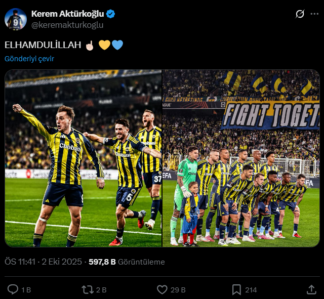 Kerem Aktürkoğlu'nun paylaşımı kısa sürede gündem olurken, binlerce taraftar yorum yaptı ve büyük beğeni topladı. Paylaşım, geceye damgasını vuran detaylardan biri oldu.