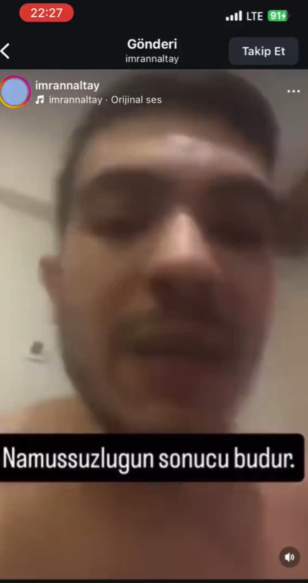 GELEN TEPKİLERE KÜFÜRLE YANIT VERDİPaylaşımı yaptığı öne sürülen "İmran Altay" adlı kullanıcının profili, sosyal medya kullanıcıları tarafından şikayet yağmuruna tutulurken; işkenceci ağabey, gelen tepkiler sonrası yeni bir video çekti. Kendisine gösterilen tepkilere küfürlerle yanıt verdi.