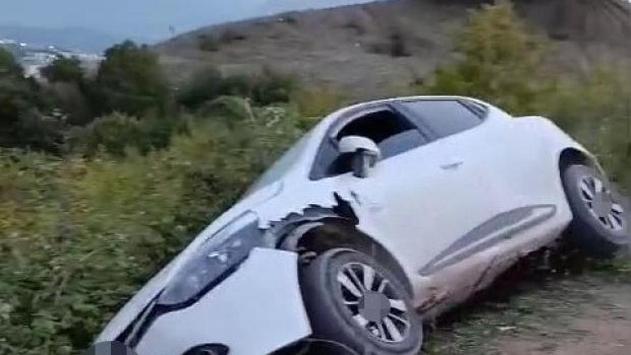 Kontrolden çıkan otomobil uçurumun eşiğinde durdu!