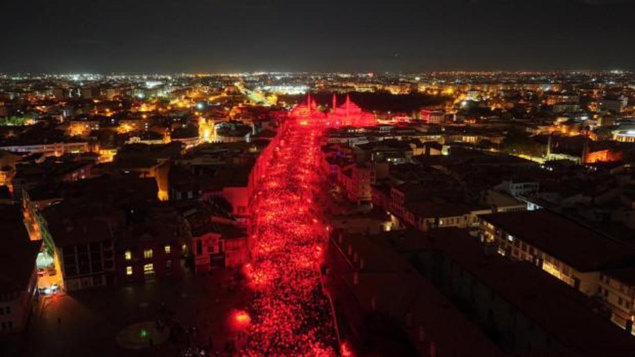 Kentin ana caddeleri ve meydanları yürüyüşe özel kırmızı ışıklarla aydınlatıldı. Mevlana Meydanı’nda 7 dakikalık oturma eylemi yapıldıktan sonra etkinlik sona erdi.