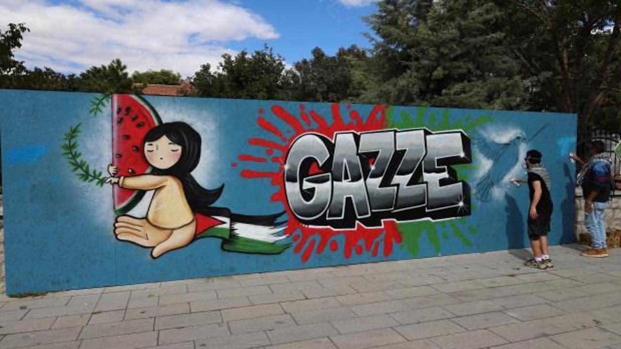 Konya’da gönüllü grafiti sanatçıları “Gazze” için çizdi