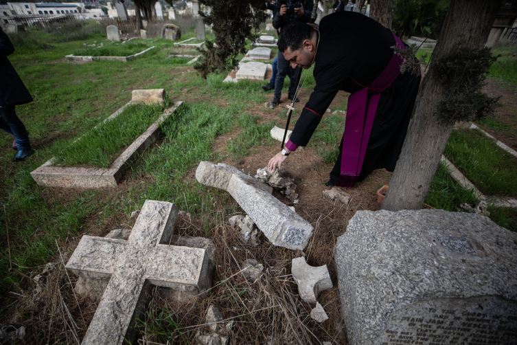 [İşgalci Yahudi yerleşimciler, Kudüs'te Hristiyan mezarlarını da tahrip ediyor. Fotoğraf: AA]