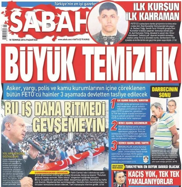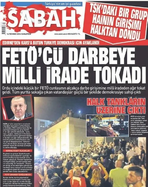15 Temmuz gecesi saat 22.00 sularında SABAH'ın ilk baskısı tamamlanmak üzereydi. Fakat Boğaziçi Köprüsü'nden gelen olağan dışı hareketlilik haberiyle birlikte tüm yayın planı değişti. Manşet anında revize edildi, "ABD'nin uşağı, CIA'nın kuklası" başlığıyla FETÖ'nün ihaneti en net şekilde ilan edildi.