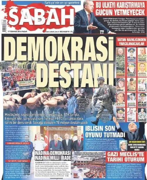 15 Temmuz gecesi yaşanan darbe girişimi, yıllardır adım adım hazırlanan işgal planının final perdesiydi. SABAH, FETÖ'nün ihanetini perde açılmadan önce gören ve milleti karanlığa karşı uyaran, Türk medyasının öncü gazetesi oldu.