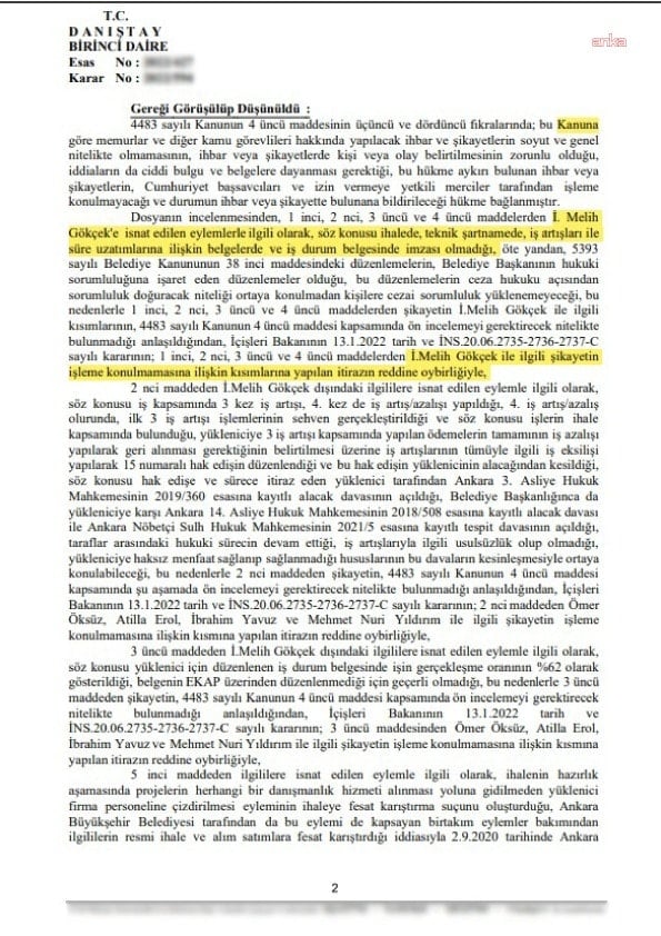 Belediye bunun üzerine kararı Danıştay’a taşıdı. Fakat Danıştay Birinci Dairesi, Gökçek’in belgelerde doğrudan imzası bulunmadığı gerekçesiyle ABB’nin itirazını reddetti.