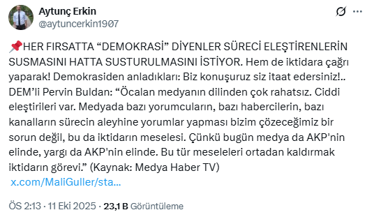 Gazeteci Aytunç Erkin: "Her fırsatta 'demokrasi' diyenler süreci eleştirenlerin susmasını hatta susturulmasını istiyor. hem de iktidara çağrı yaparak! demokrasiden anladıkları: biz konuşuruz siz itaat edersiniz!.."
