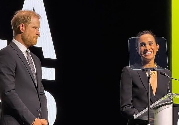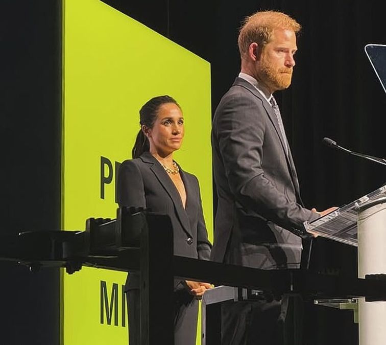Sahnede Meghan Markle'a eşlik eden Prens Harry, teknolojik gelişmelerin tehlikeleri hakkında konuşurken, "Bu, dijital çağda çocukları koruma ve aileleri destekleme konusundaki ortak misyonumuzda önemli bir an" dedi. İkili, konuşmalarını tamamlarken alkışlarla karşılandı.