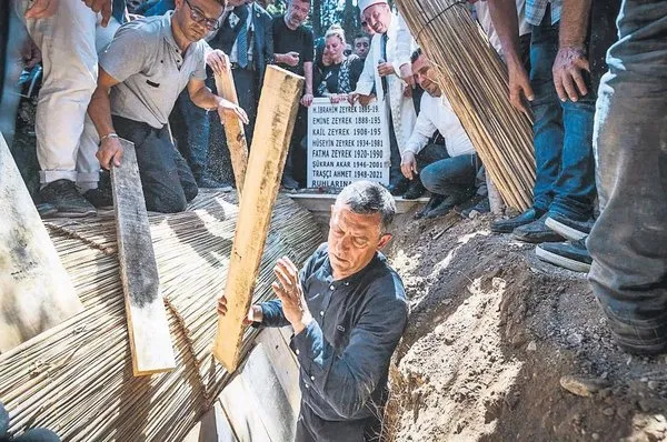 Özgür Özel'in dün yakın arkadaşı olan Zeyrek'in mezarına inip tahtalarını dizerken kayda geçen anları da şüphesiz günün en çarpıcı karesiydi.