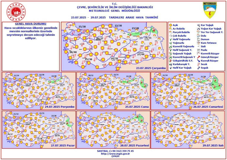 Tekin, hafta sonu sıcaklıkların başkentte 35 dereceye, pazartesi günü ise 40 dereceye kadar çıkmasının beklendiğini, sıcaklığın İstanbul'da 34 ila 36 derece, İzmir'de ise 40 ila 41 derece civarında seyredeceğini anlattı.