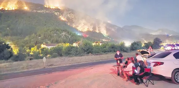 Karabük'te bir grup vatandaş, orman yangınını sandalye kurup kola, çay içerek izlemiş.