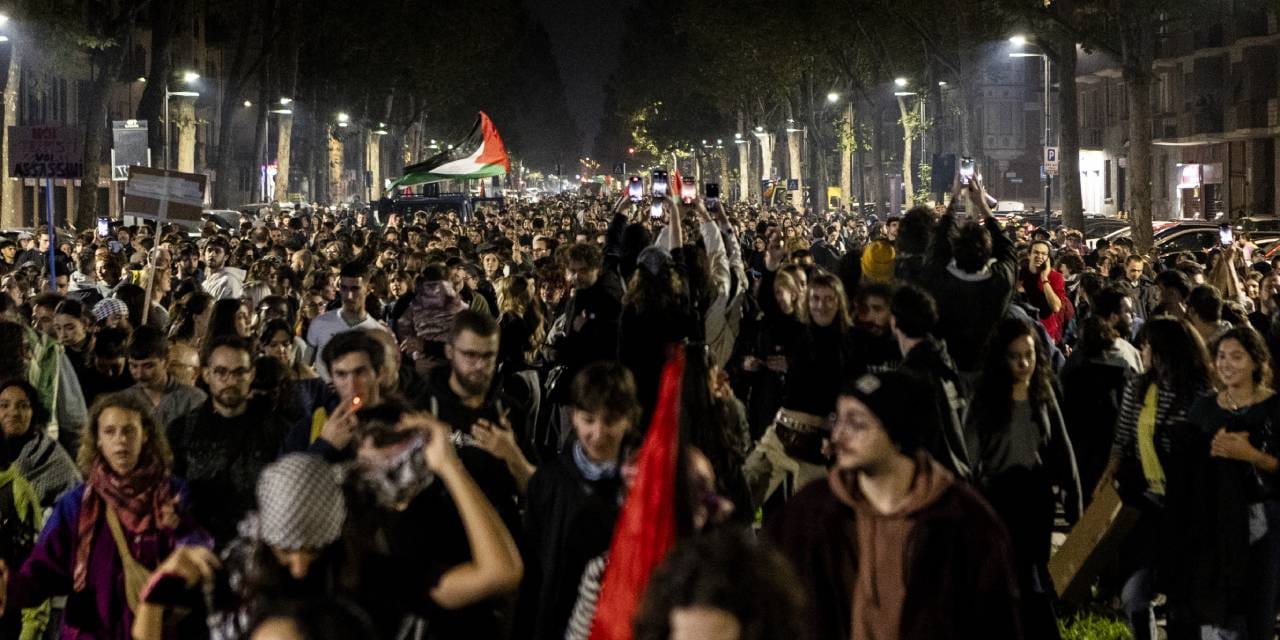 Ellerinde Filistin bayrakları taşıyan kalabalık, sık sık “Filistin’e özgürlük”, “Özgür Gazze”, “Meloni istifa” ve “Hükümet istifa” sloganları attı. Göstericiler ayrıca “Gazze’de soykırımı durdurun”, “İsrail’e silah göndermeyi durdurun” yazılı dövizler taşıdı.