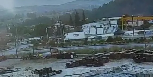 Çevrede yapılan araştırmalarda feci kazanın bir iş yeri güvenlik kameraları tarafından anbean kaydedildiği belirlendi.
