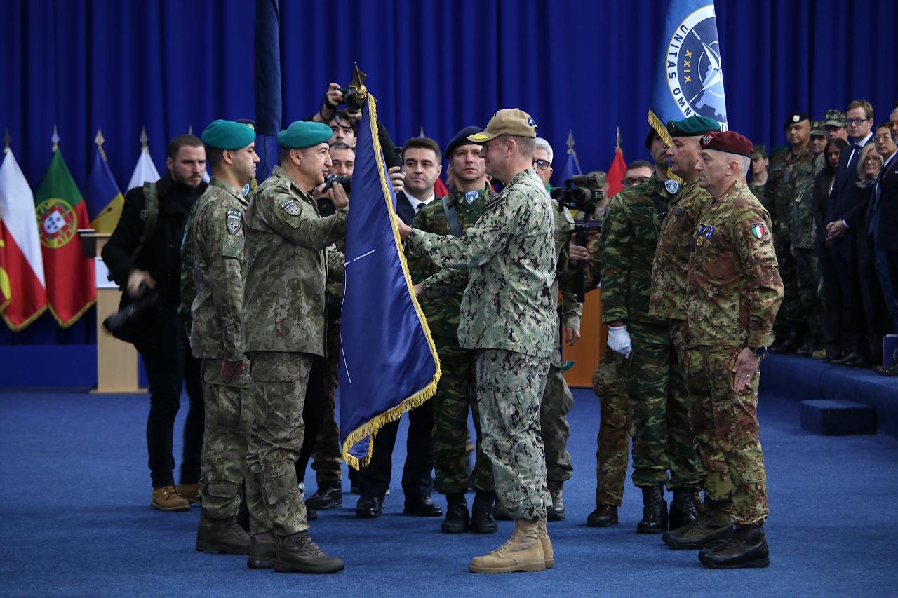 Türkiye ve İtalya milli marşlarının okunmasıyla başlayan törende KFOR'un komutanlık görevi, İtalyan Tümgeneral Enrico Barduani'den Türk Tümgeneral Özkan Ulutaş'a devredildi.